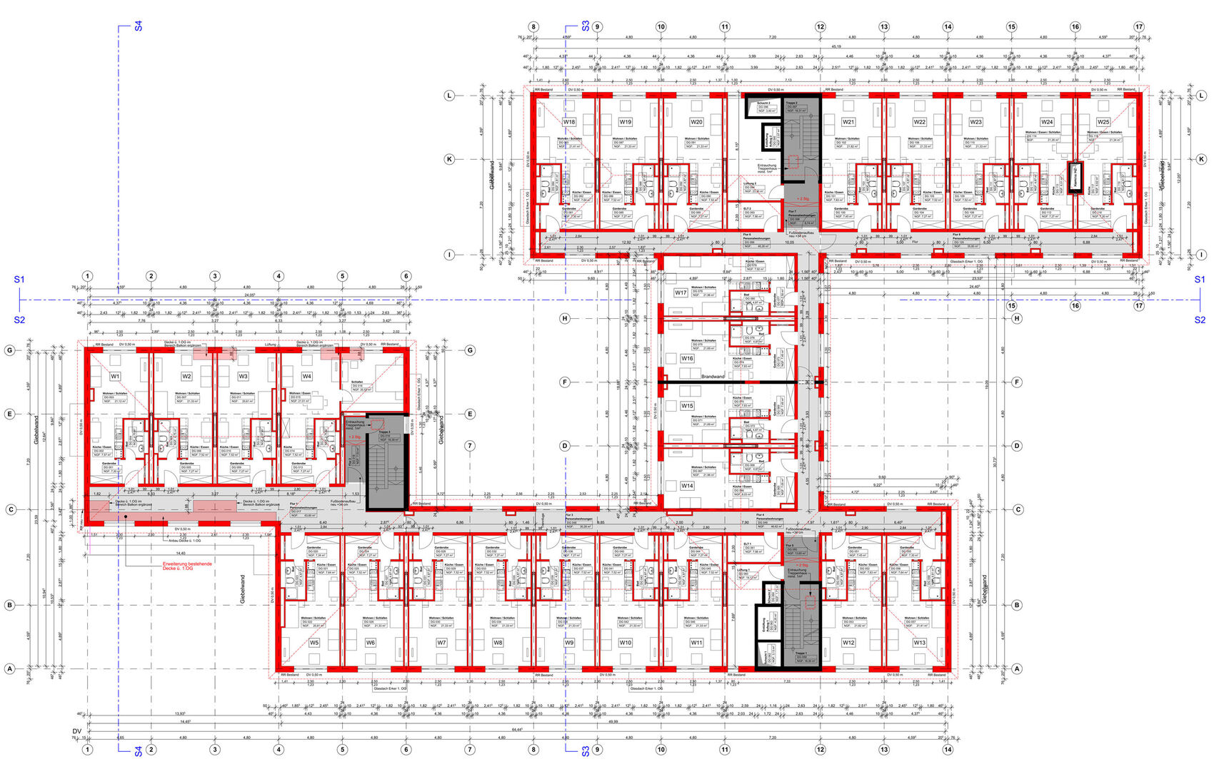 | Aufstockung Dachgeschoss mit 25 Personalwohnung | |